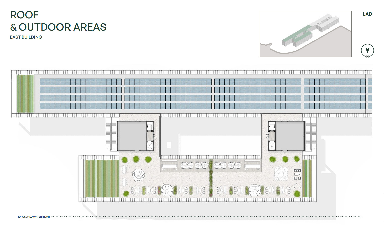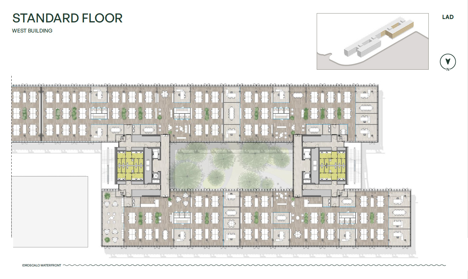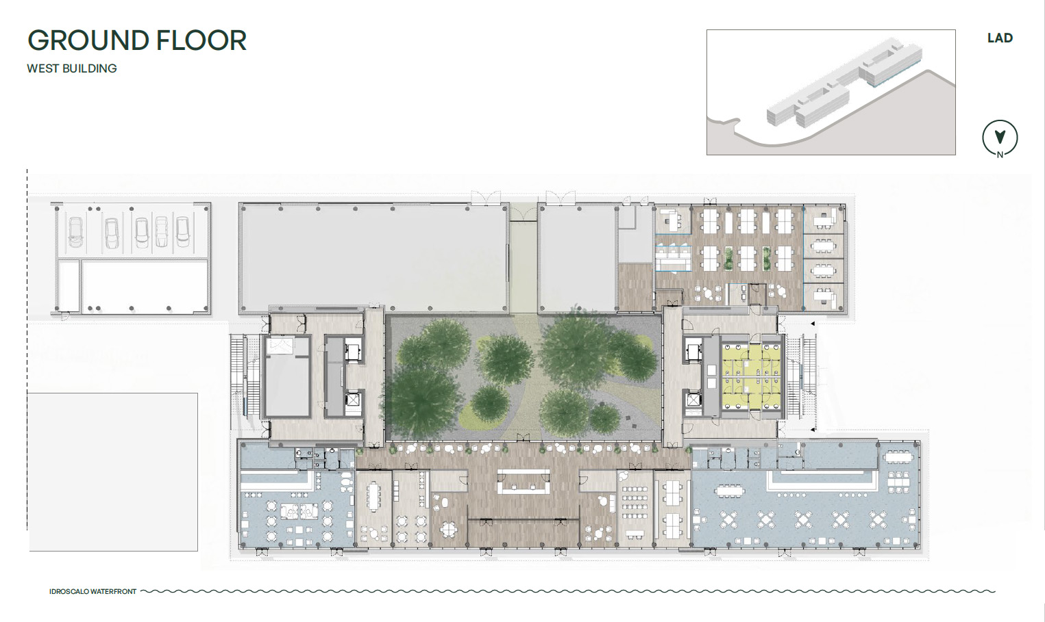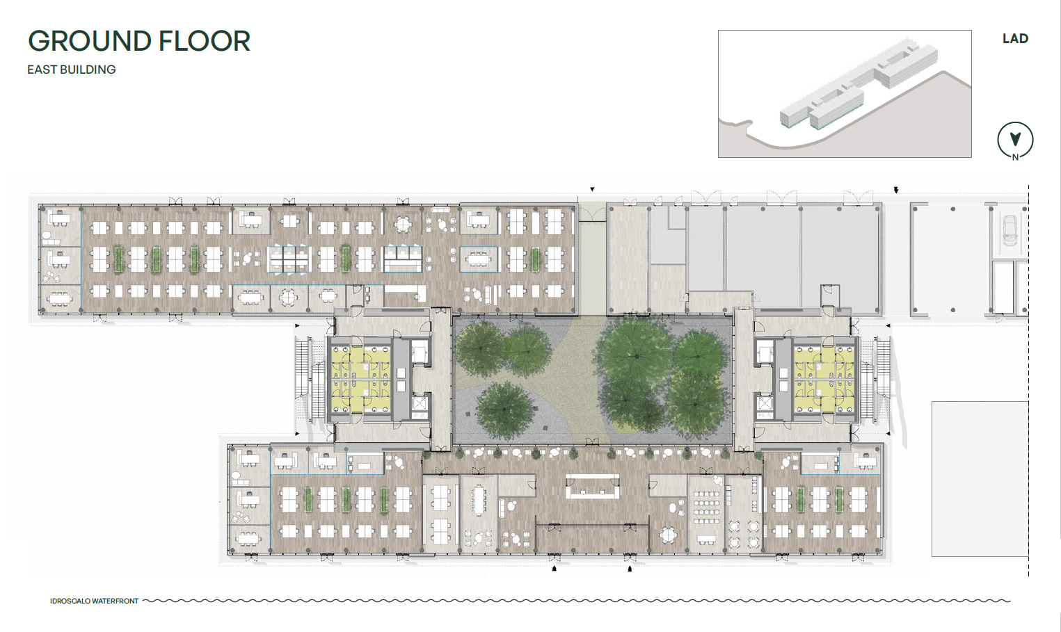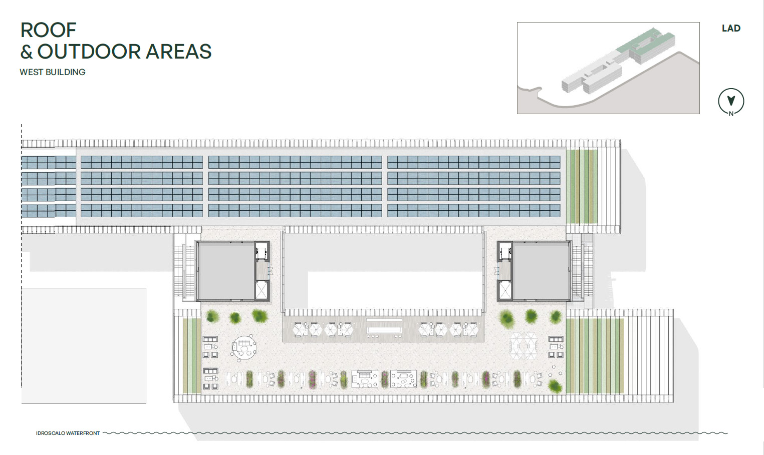 The 25,000 sqm of office space hosts innovative work environments, while a 5,000 sqm food area with outdoor seating offers the ideal setting for food & beverage activities.